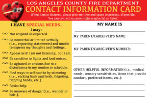 To help familiarize and expose individuals with ASD to first responders, the Los Angeles County Fire Department’s (LACoFD) Sirens of Silence program will work with local organizations, so children with ASD and their parents/caregivers can meet firefighters and lifeguards and see/touch the equipment and apparatus in a quiet, less stimulating setting.